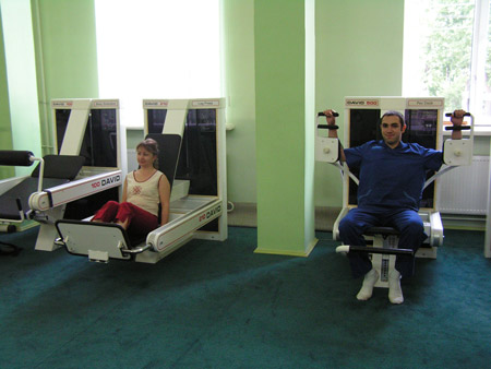 - - Лечебная гимнастика - проводится в большом или малом зале, групповым или индивидуальным методом, с применением тренажеров, локального и общего действия. Комплектование групп пациентов осуществляется по нозологическому принципу. Залы ЛФК оборудованы современными реабилитационными тренажерами: на отдельные группы мышц (сlinicа David), беговые дорожки, велоэргометры и другой вспомогательный спортивный инвентарь (резистоболлы, «шведская стенка», мячи, гантели и др.);