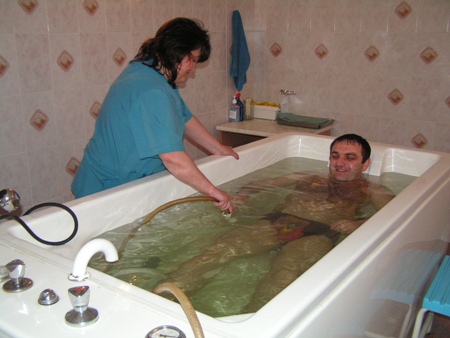 В водолечебнице проводятся процедуры подводного душа-массажа, лечебные (йодобромные и хлоридно-натриевые) ванны, вакуумный душ-массаж.