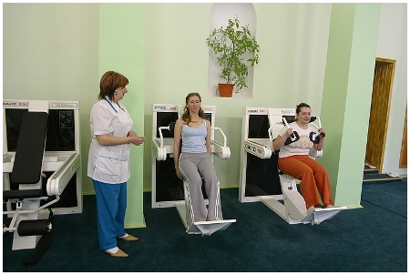 - - Лечебная гимнастика - проводится в большом или малом зале, групповым или индивидуальным методом, с применением тренажеров, локального и общего действия. Комплектование групп пациентов осуществляется по нозологическому принципу. Залы ЛФК оборудованы современными реабилитационными тренажерами: на отдельные группы мышц (сlinicа David), беговые дорожки, велоэргометры и другой вспомогательный спортивный инвентарь (резистоболлы, «шведская стенка», мячи, гантели и др.);